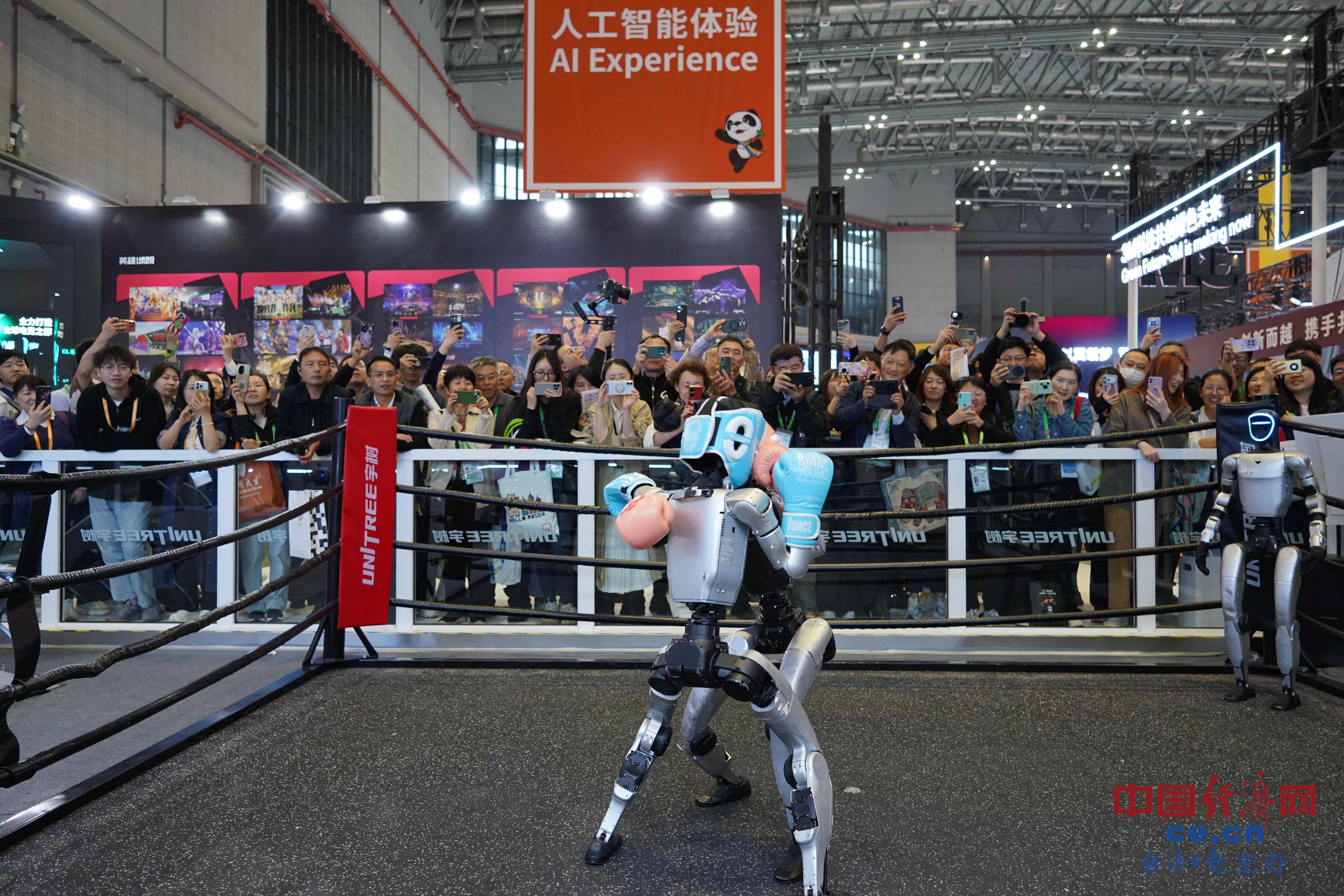 图为人工智能专区机械人劲舞表演。第八届中国国际进口博览会(简称“进博会”)正在上海举办。第八届中国国际进口博览会(简称“进博会”)正在上海举办。图为人工智能专区机械人拳击肉搏表演。